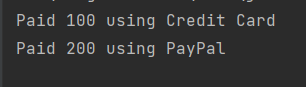 System.out.println("Paid " + amount + " using PayPal");