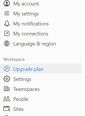 팝업창에서 사이드 메뉴에 있는 Upgrade plan을 클릭합니다.